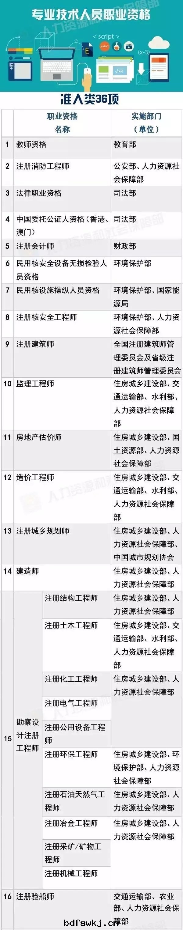 專業技術(shù)人(rén)員職業資格59項,含準入類(lèi)36項,水(shuǐ)平評價類(lèi)23項;